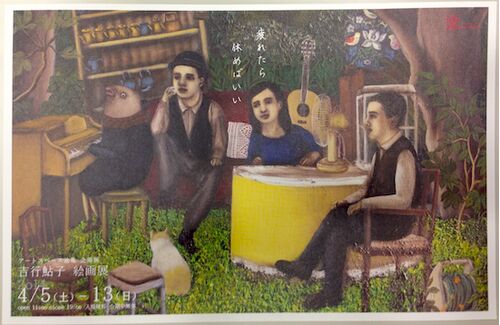 忙中閑あり。一応、記憶にとどめておくために2週間前に終了した絵画展について。 とあるお店に置いてあったフライヤー、吉行鮎子絵画展「疲れたら休めばいい」@アートスペース油亀。何気なく手に取ってみたんだけど、妙に心惹かれるものがあった。 まるで童…