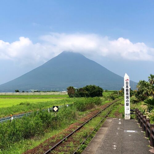 本土最南端佐多岬から再び北上し、大隅半島の根来港からフェリーに乗船。錦江湾を横断し、薩摩半島の山川港へ。上陸してから向かったのは・・・ JR日本最南端の駅「西大山駅」(^^)。案内板には・・ と書いてある。最北端の稚内には行ったことないんだよね。…